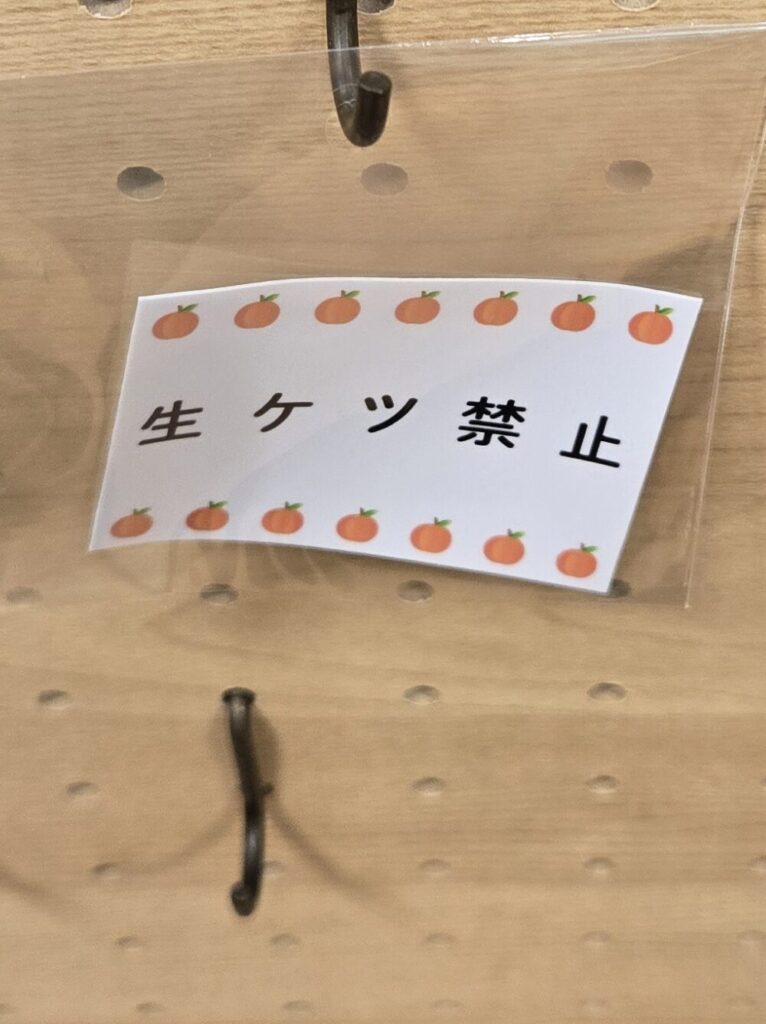 なぜか、300円で販売されている「生ケツ禁止」ステッカー。